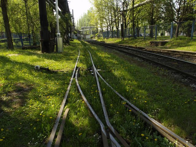 Widok w wkierunku końca toru w±skiego. Lokomotywy do dalszych czę¶ci huty jad± po zmianie kierunku i przecięciu toru normalnego.