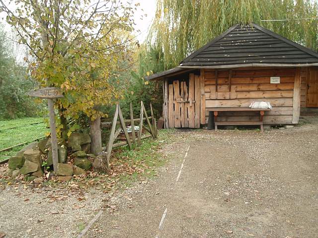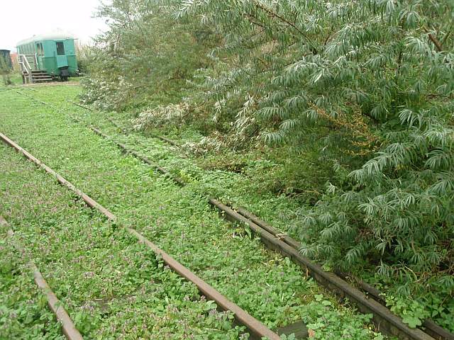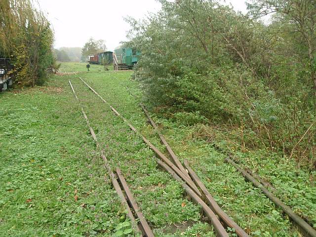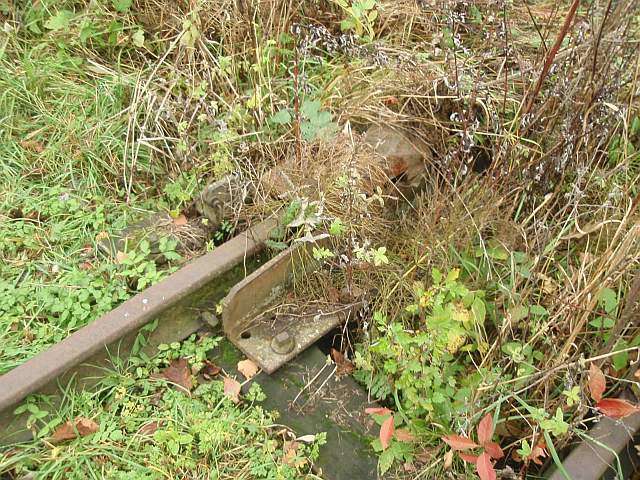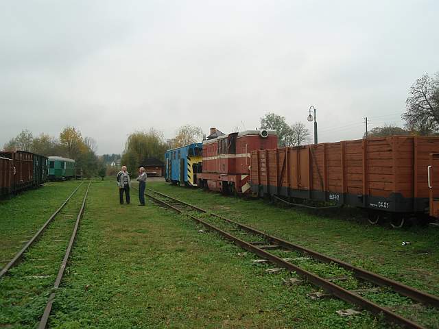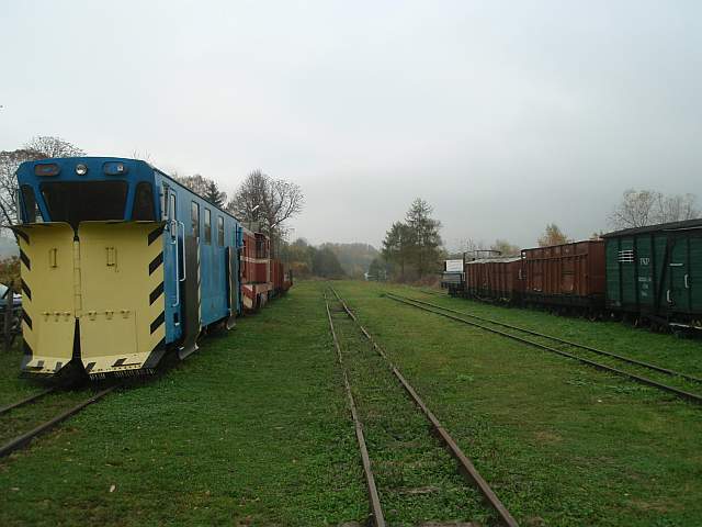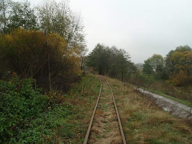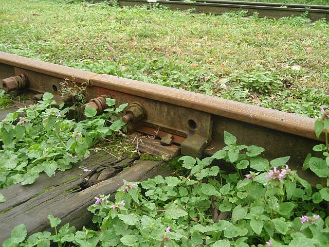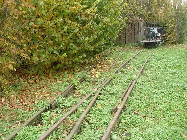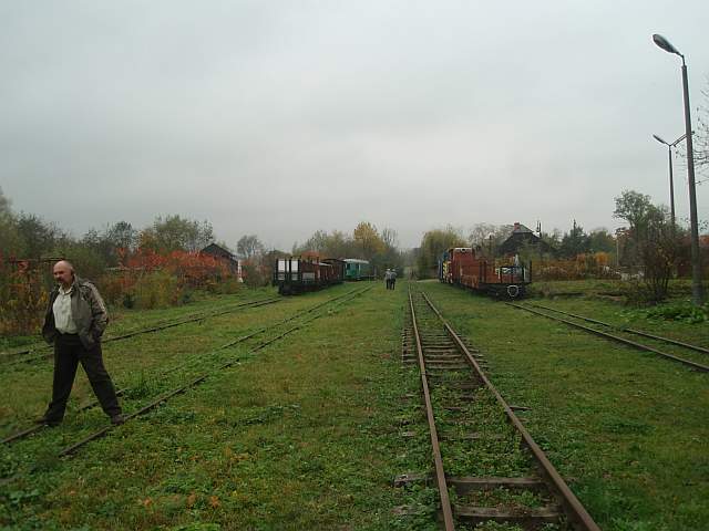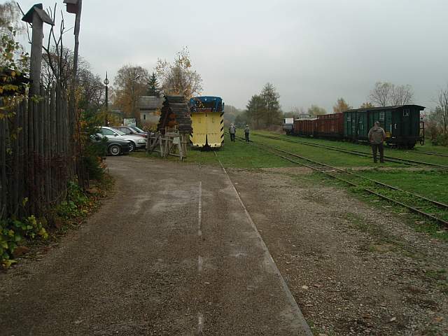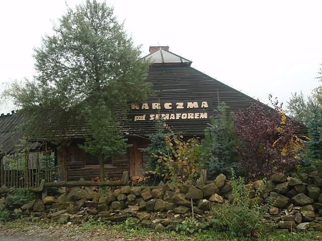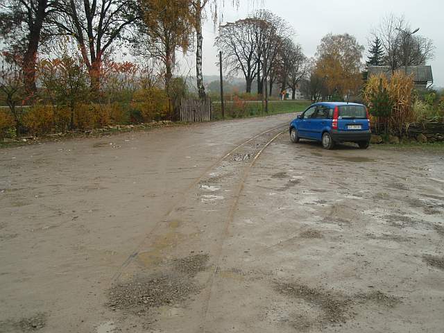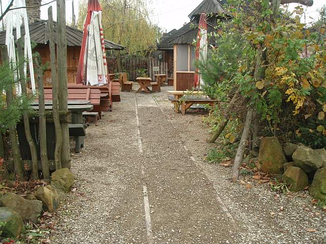 Szyny leżące pomiędzy stolikami karczmy "Pod semaforem".