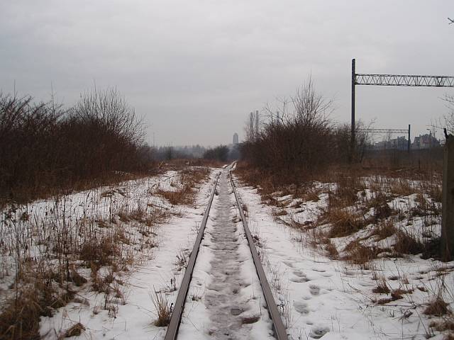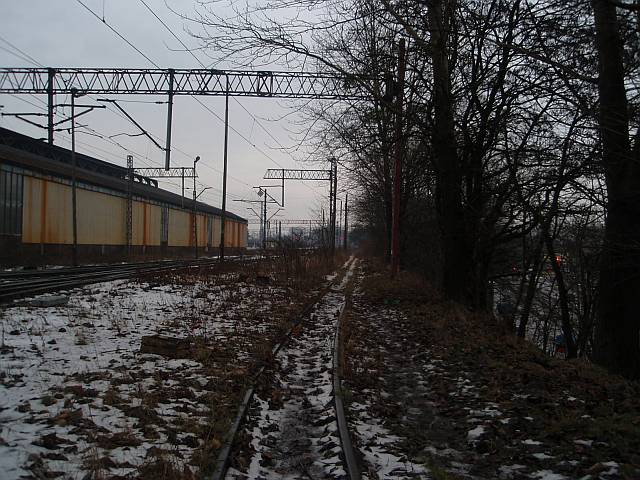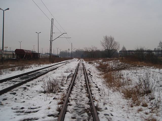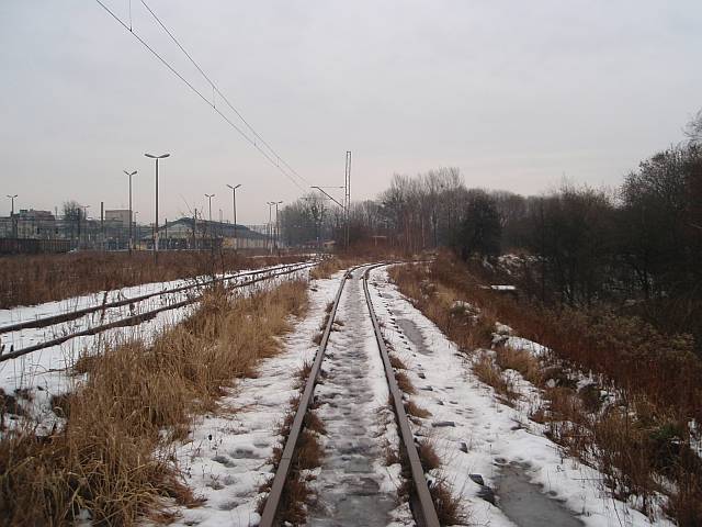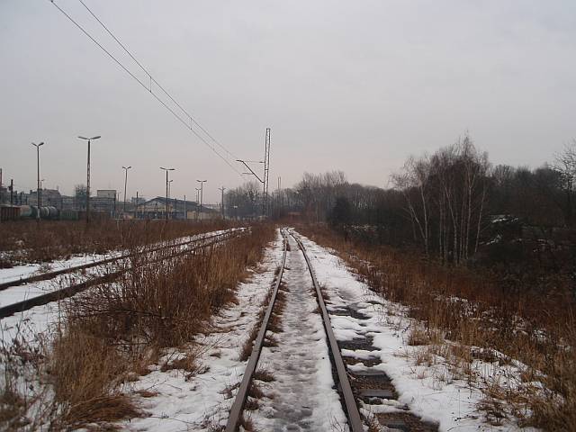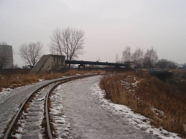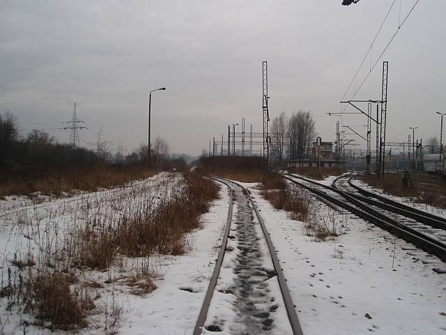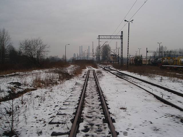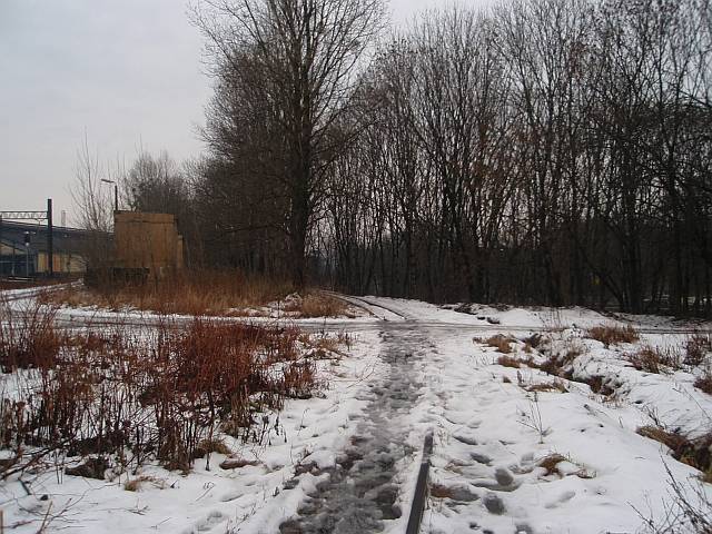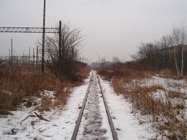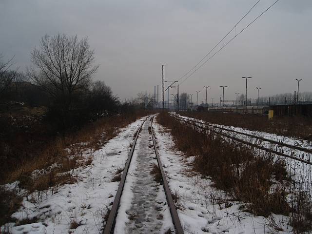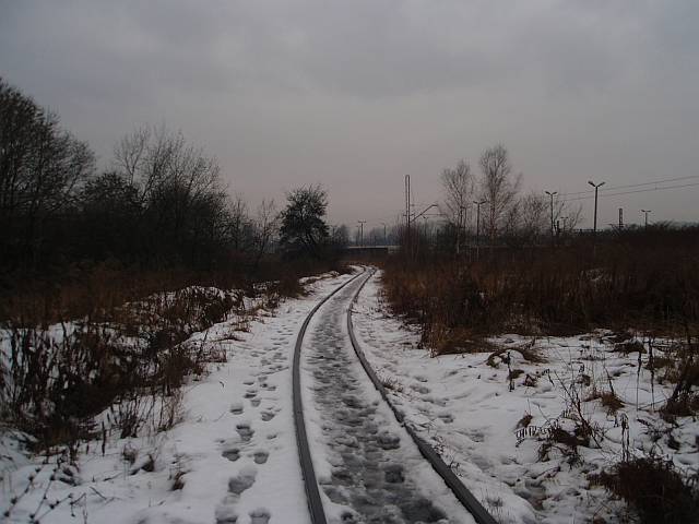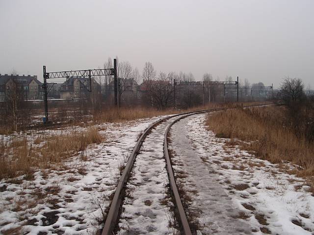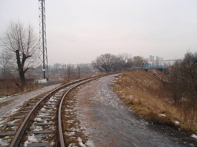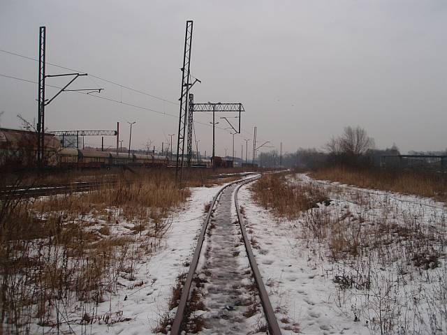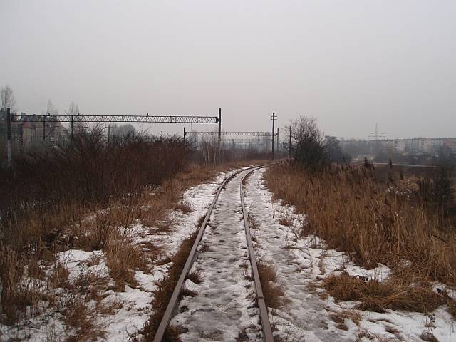 Widok na wygięte elementy ochronne na moście nad linią normalnotorową do Gliwic.