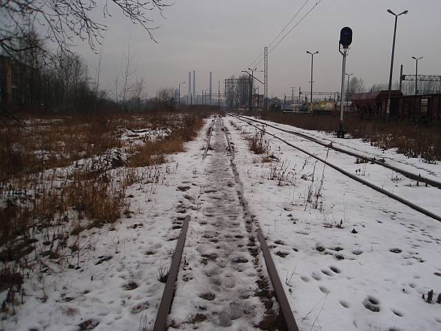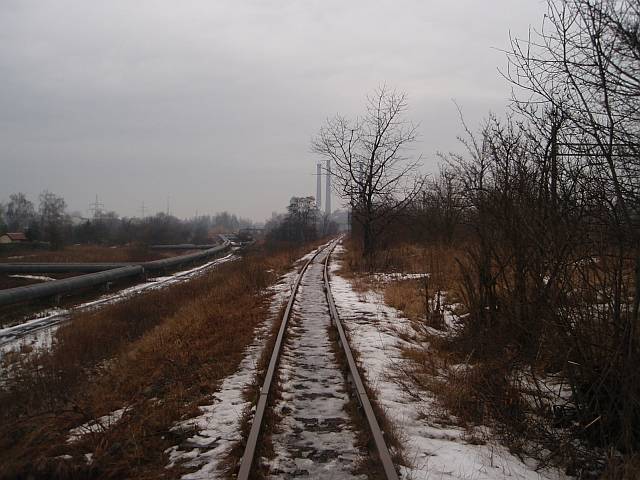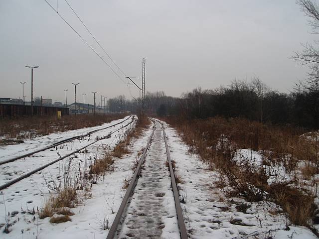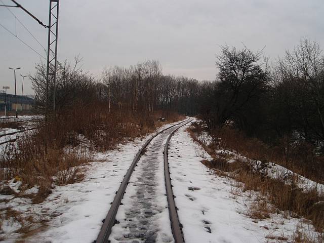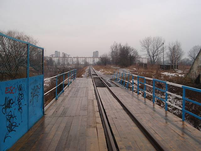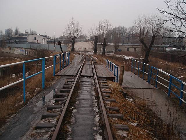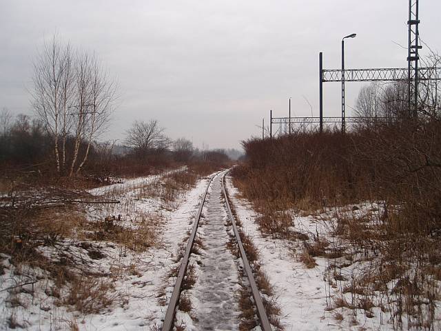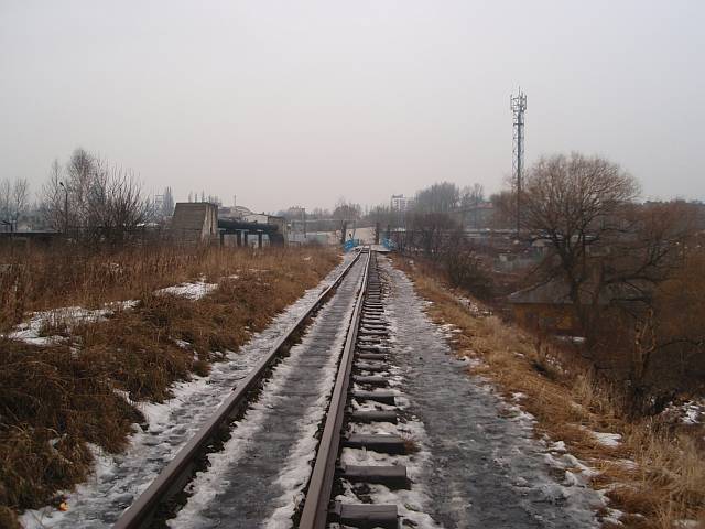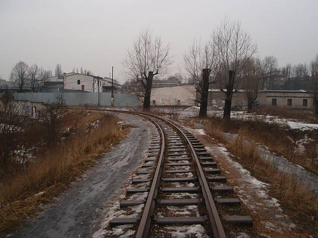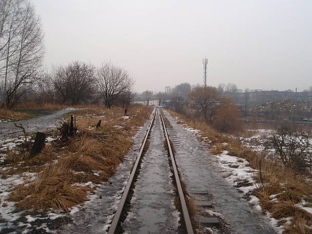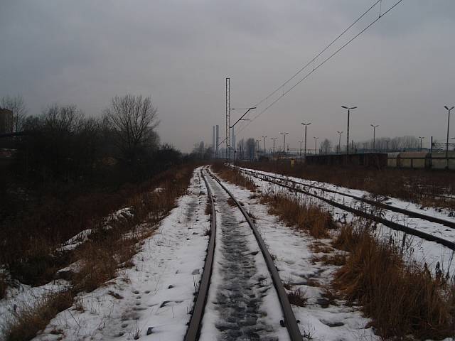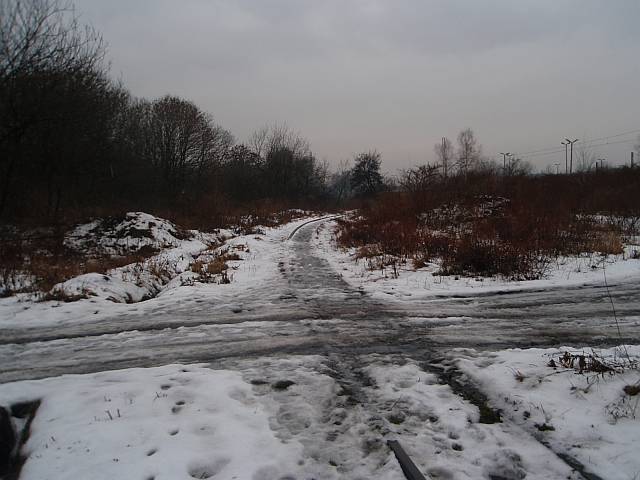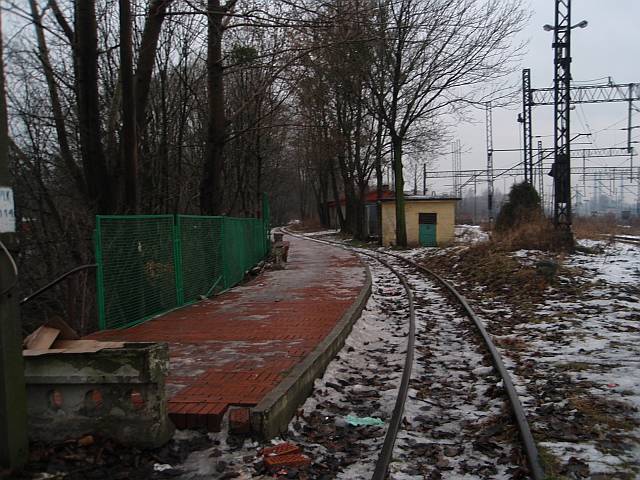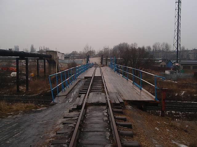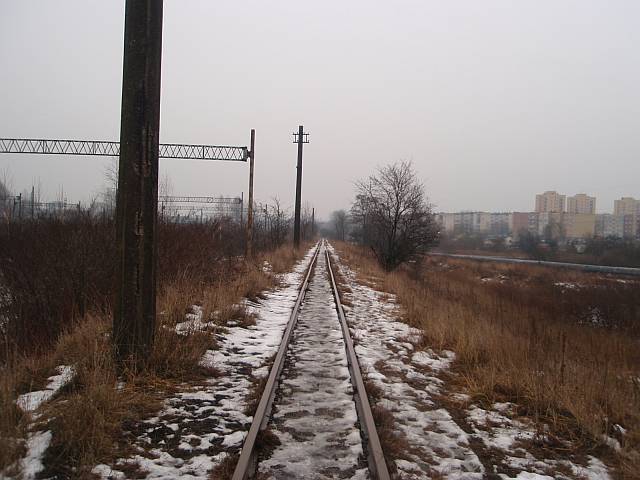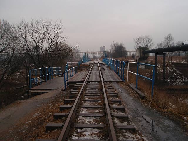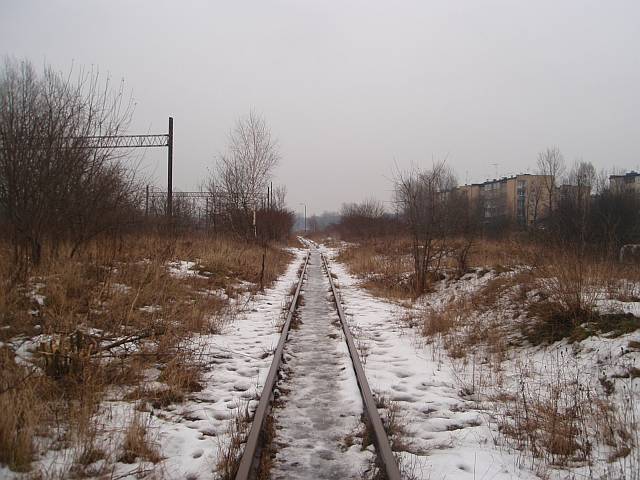 Widok na wygięte elementy ochronne na moście nad linią normalnotorową do Gliwic.
