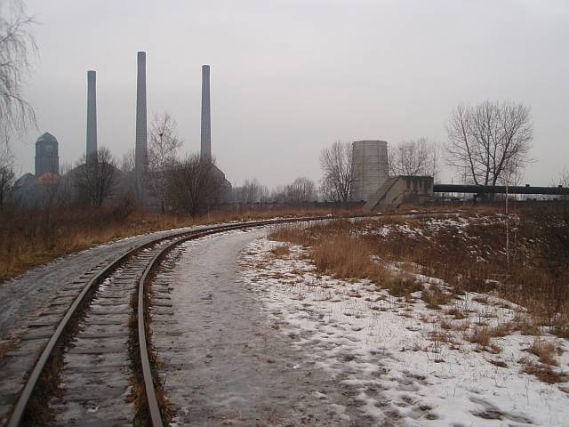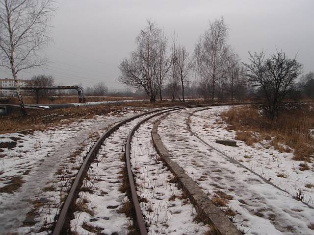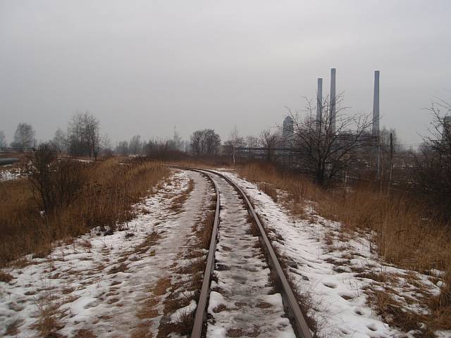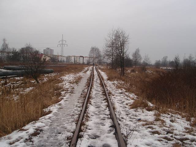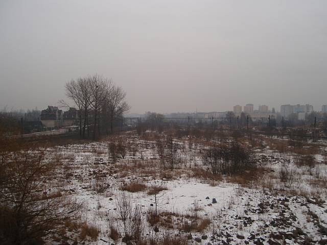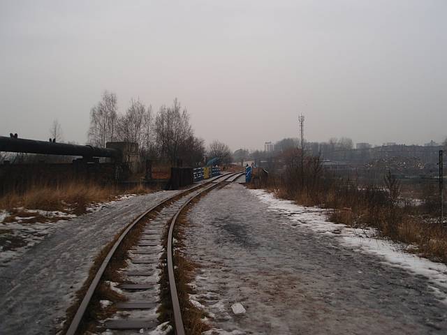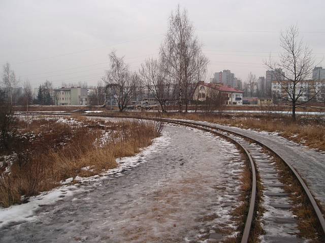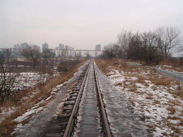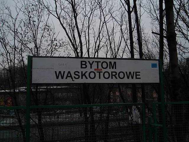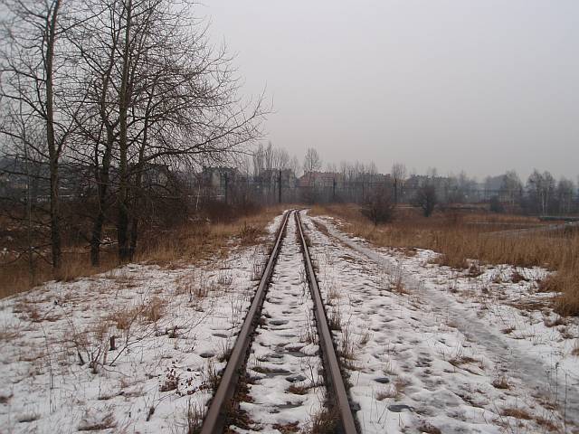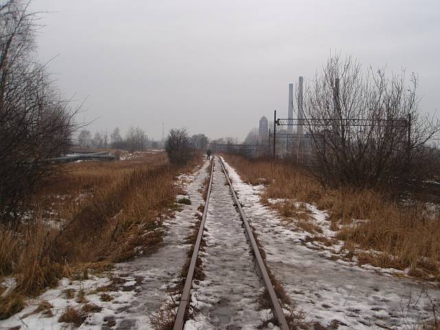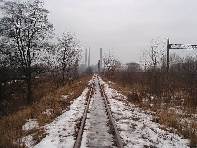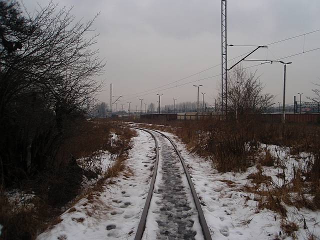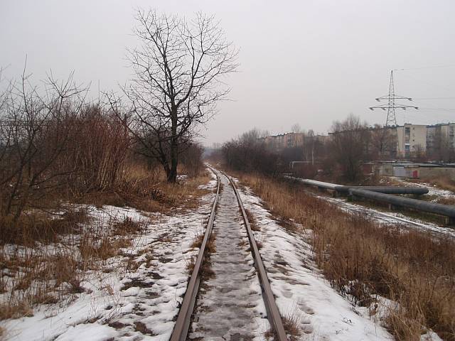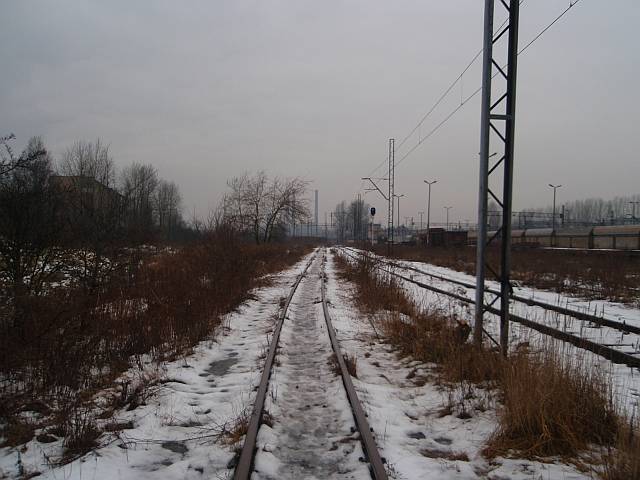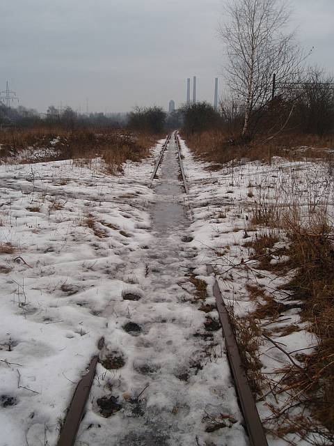 Widok na wygięte elementy ochronne na moście nad linią normalnotorową do Gliwic.