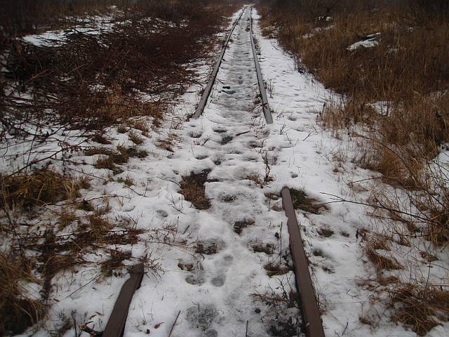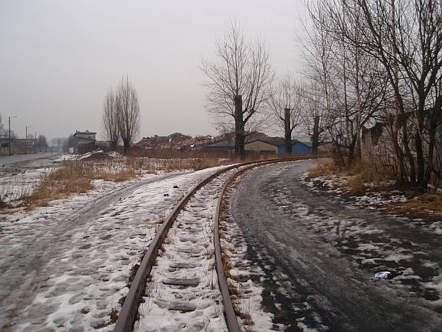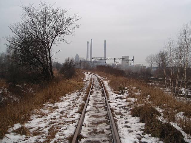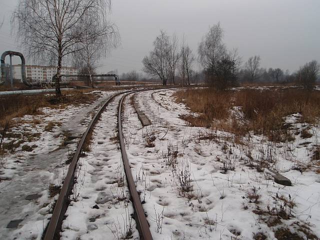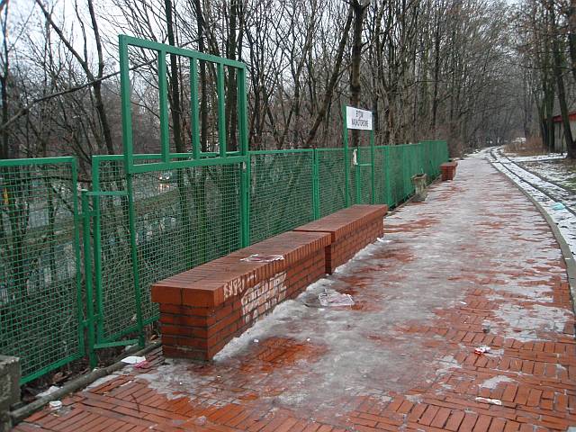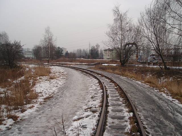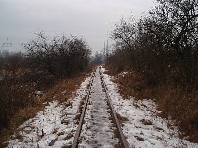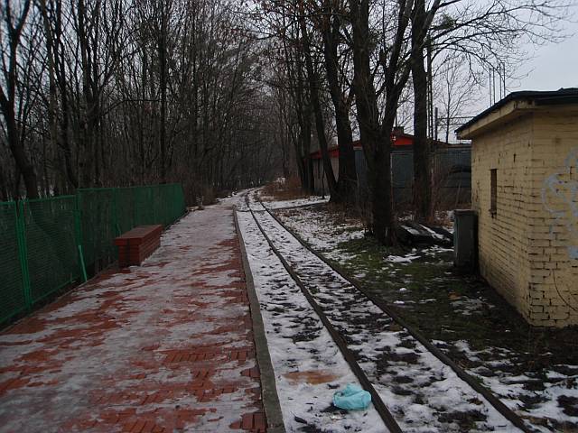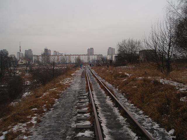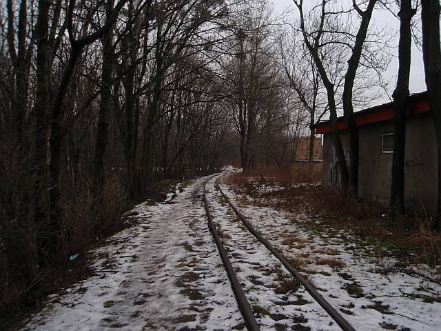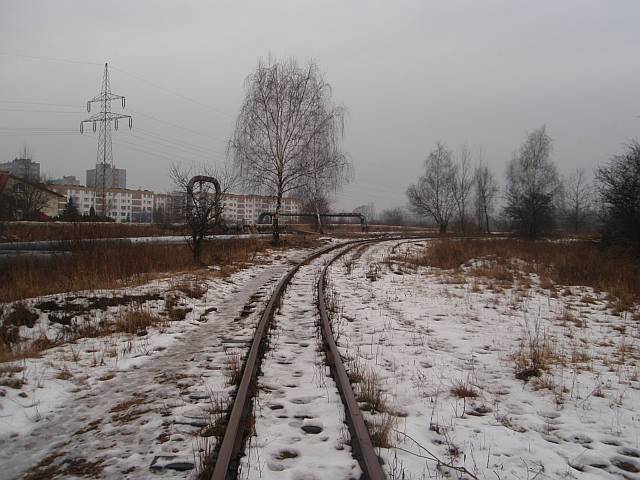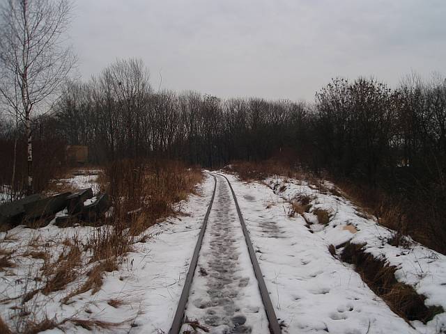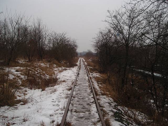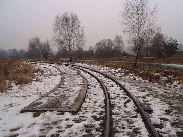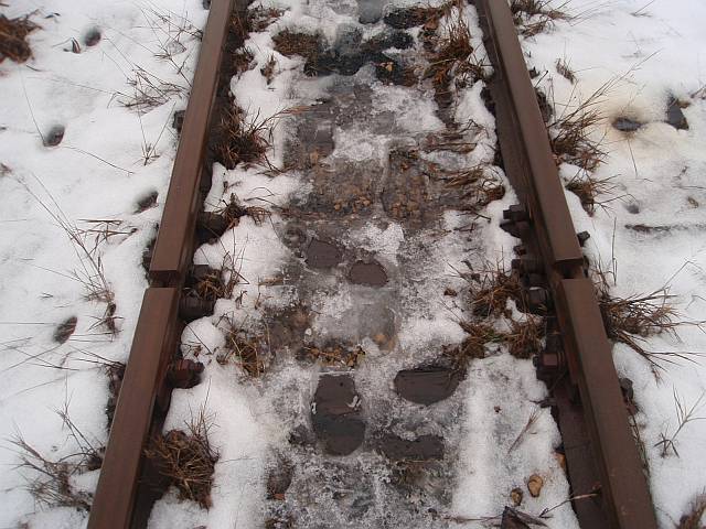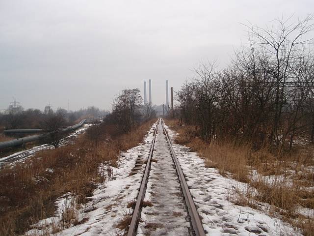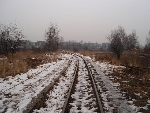 Widok na wygięte elementy ochronne na moście nad linią normalnotorową do Gliwic.