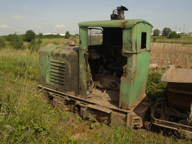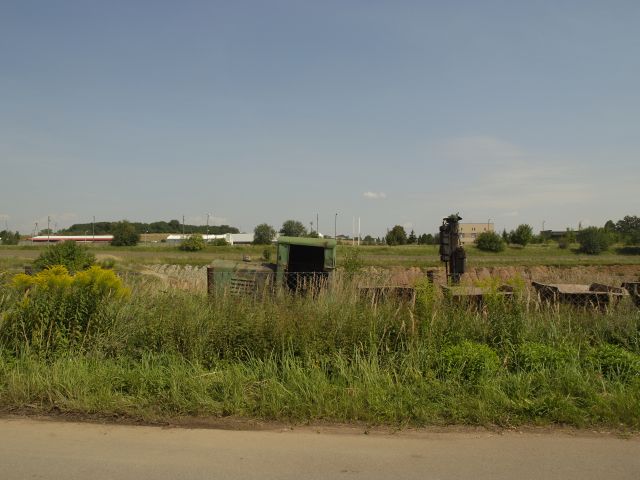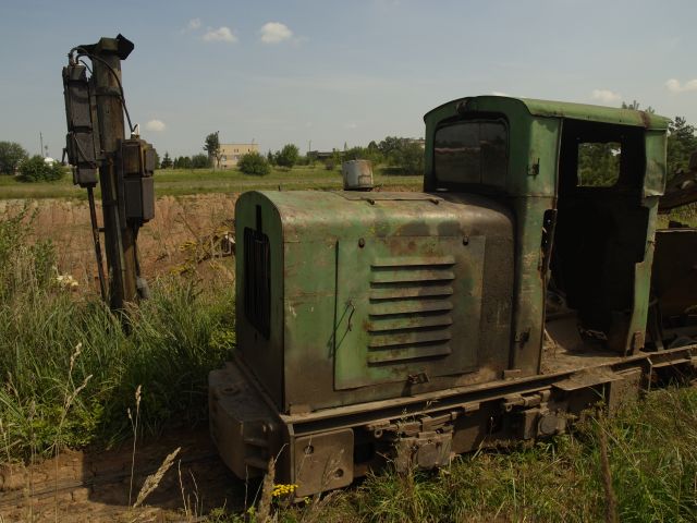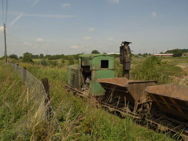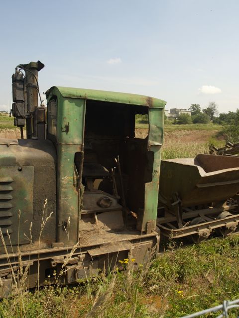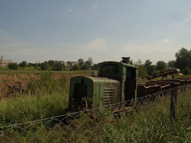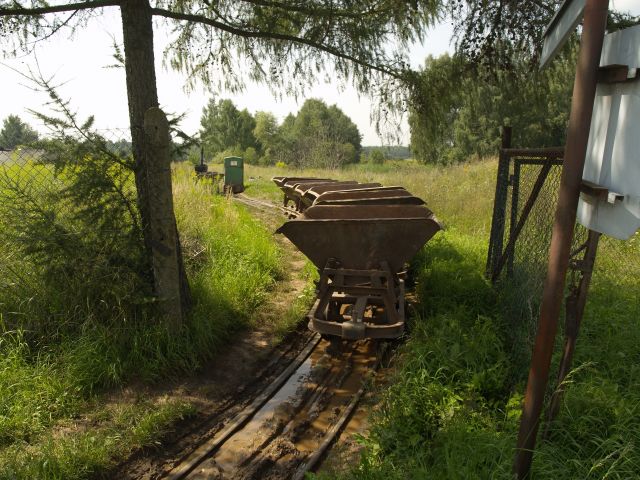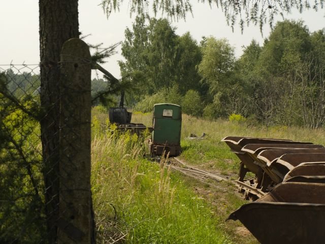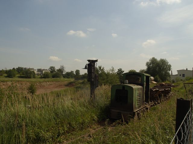 Lokomotywa GLs30 odpoczywająca na terenie cegielni.