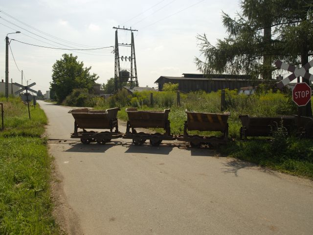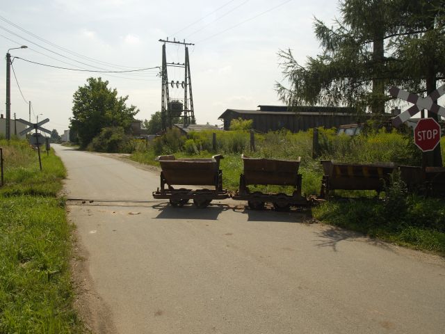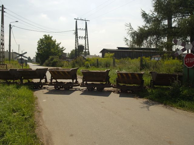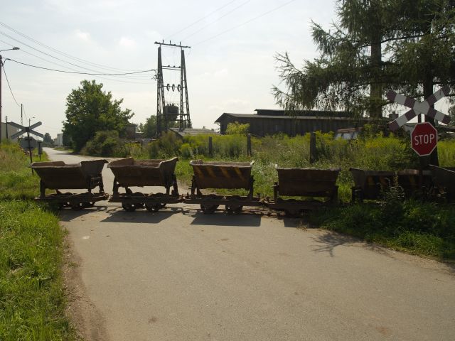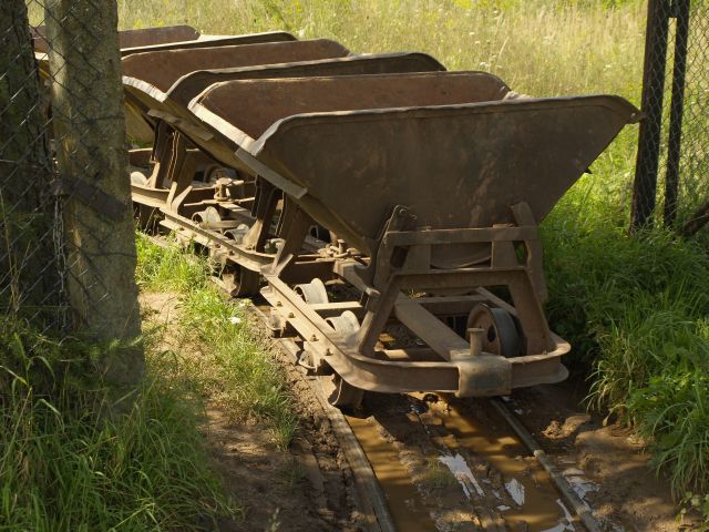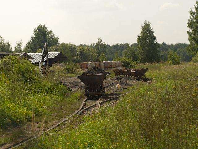 Spychanie załadowanych koleb za zwrotnicę na terenie wyrobiska.