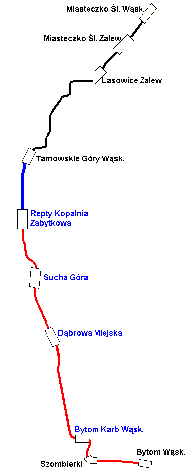 na niebiesko: trasa pociągu dodatkowego; |
