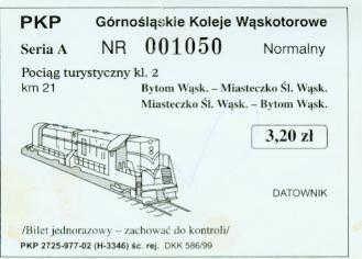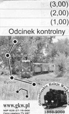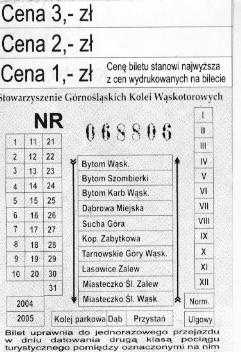 Bilet na pociąg z okazji Dni GKW z roku 2005.