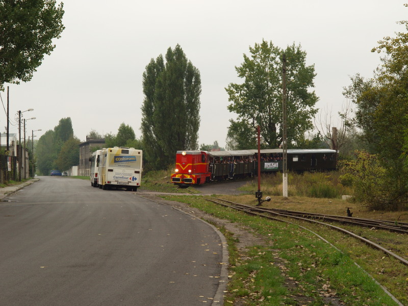 Lxd2-374 wjeżdżający na Bytom Karb Wąsk. z pociągiem turystycznym z Bytomia Wąsk.