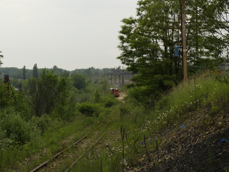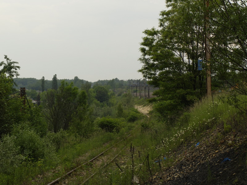Widok na szlak na obszarze szkód górniczych przy normalnotorowej stacji Bytom Karb.