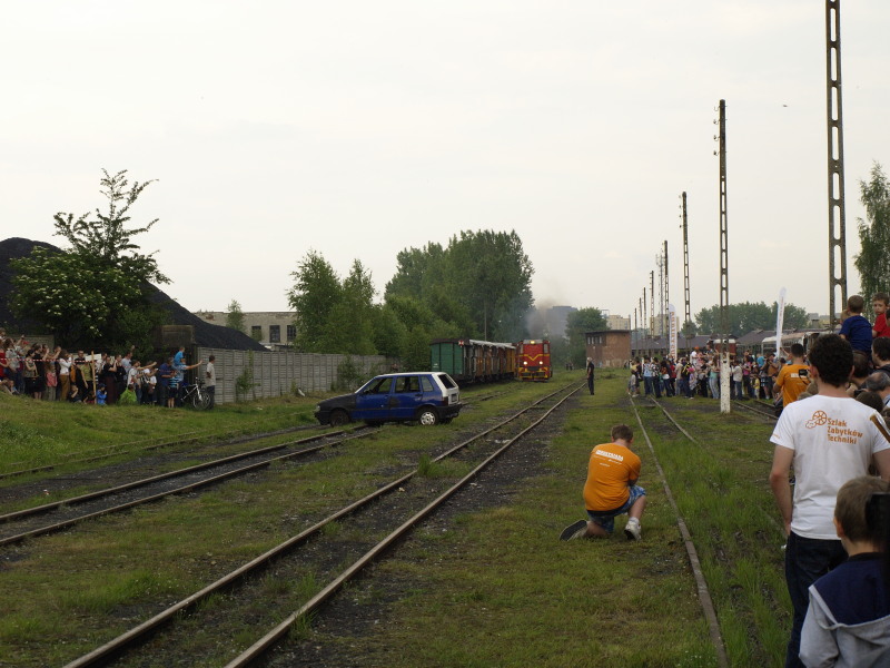 Symulacja zderzenia lokomotywy z samochodem z udziałem Lxd2-352.