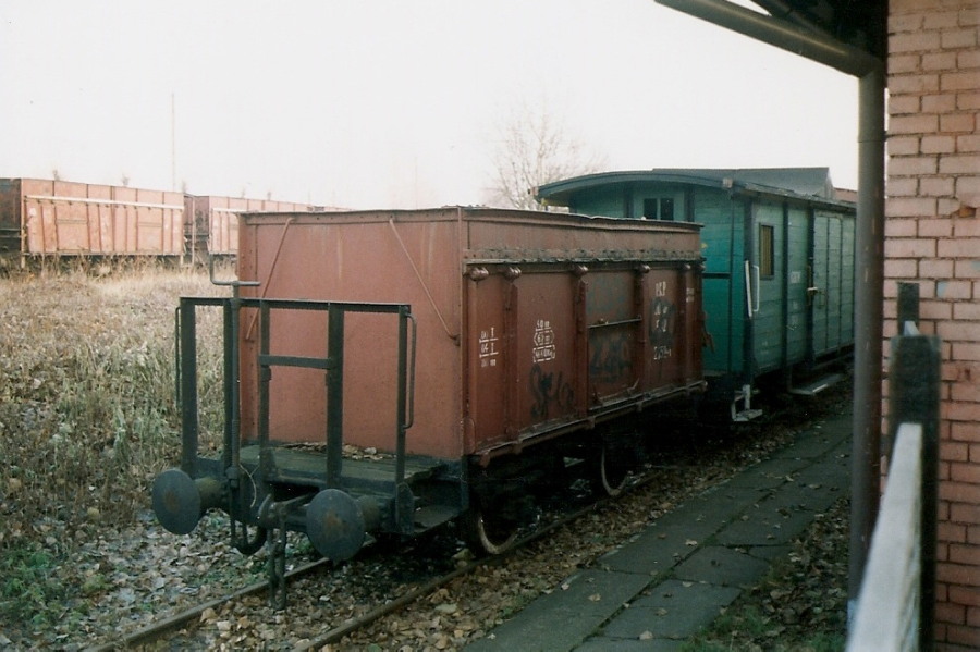 Dwuosiowa węglarka serii Wh i czteroosiowy brankard z 1898 roku.