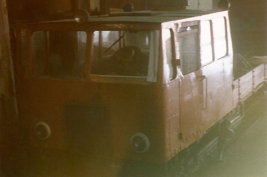 Wózek motorowy Wmc106 wewnątrz hali lokomotywowni.