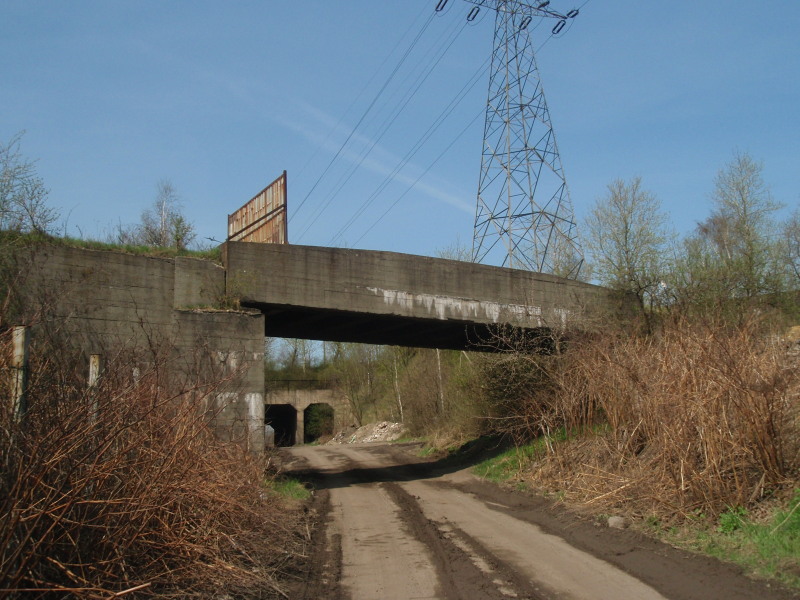 Kilkaset metrów dalej most zlikwidowanej linii kolei piaskowej nad drog± i dawnym szlakiem Zgoda - Ruda Wsch. W±sk.