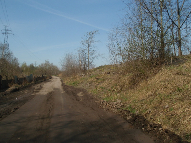 Już za tunelem. Tor biegł obok drogi, lecz starotorza nie widać ze względu na osuwiska.