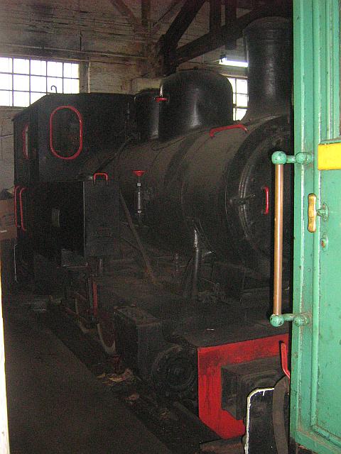 Parowóz Las 27 stojący w hali lokomotywowni Bytom Karb Wąsk.