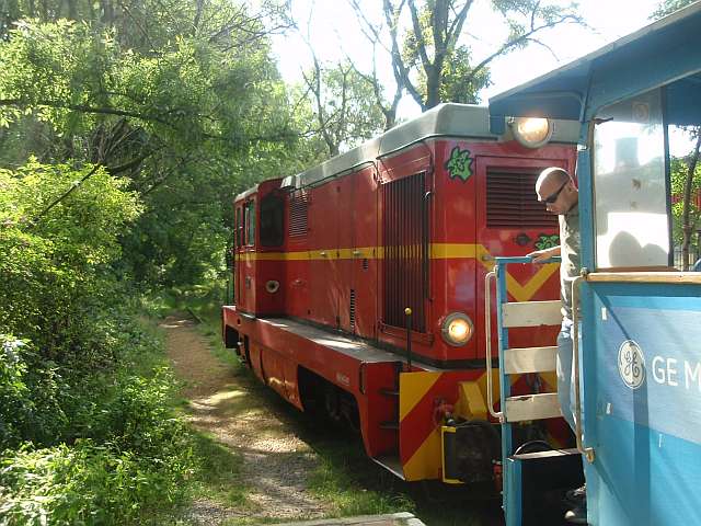 Parowóz "Las" stojący między salonką a drezyną Wmc106.