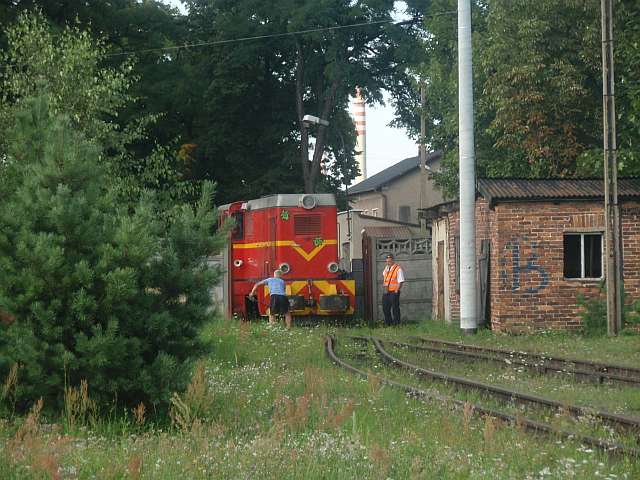 Inna lokomotywa tego typu objeżdża skład na stacji Miasteczko Śl. Wąsk.
