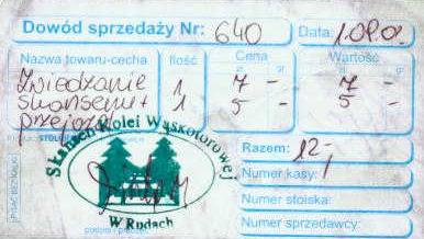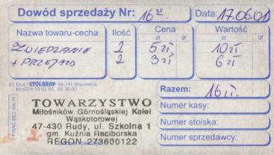 Bilet na zwiedzanie i przejazd z roku 2001.