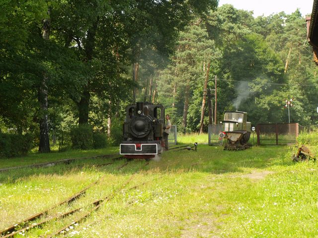 Las49 zjeżdżający na boczny tor i WLs180-36 podjeżdżający do pociągu turystycznego, z którym pojedzie do Stanicy.