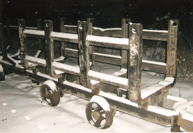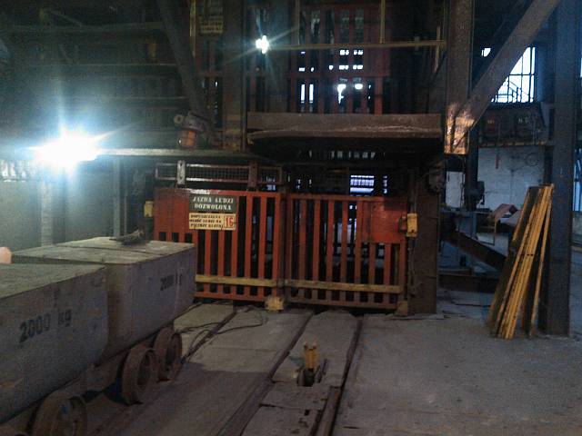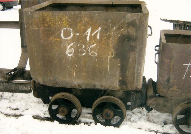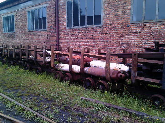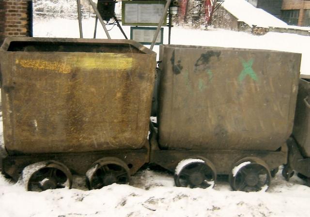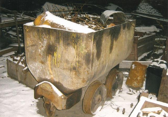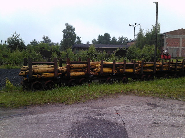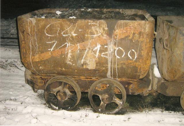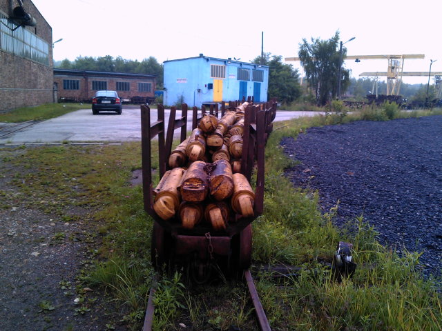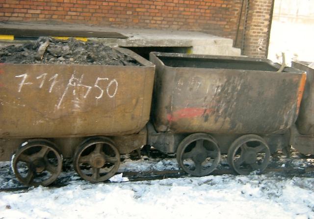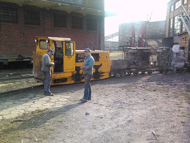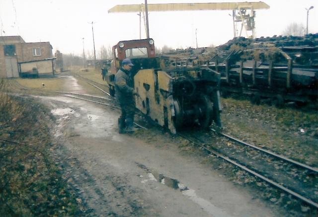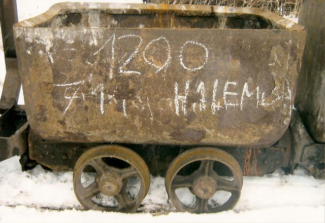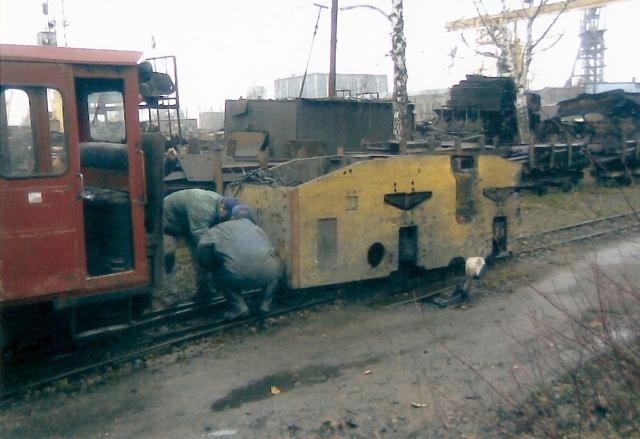 Wpychanie drzewiarki na terenie szybu "Wschodniego".