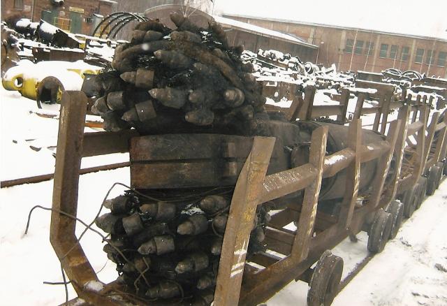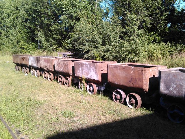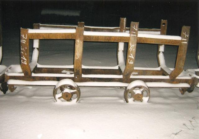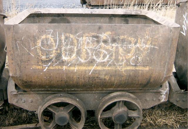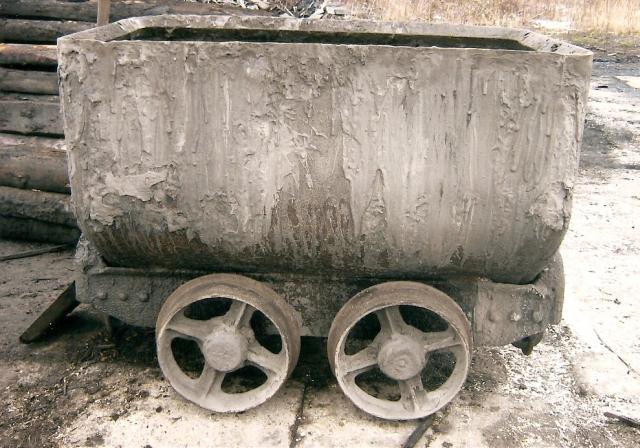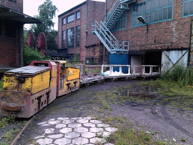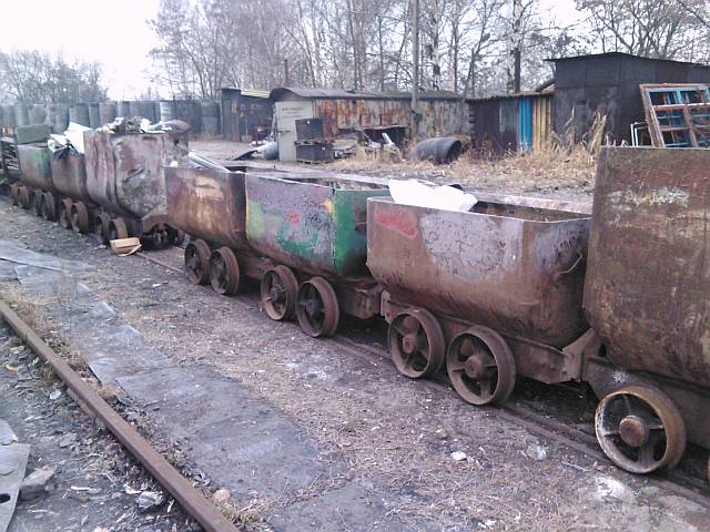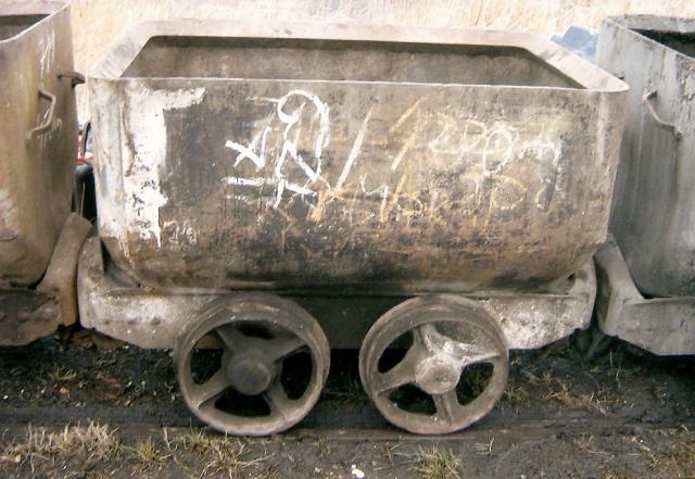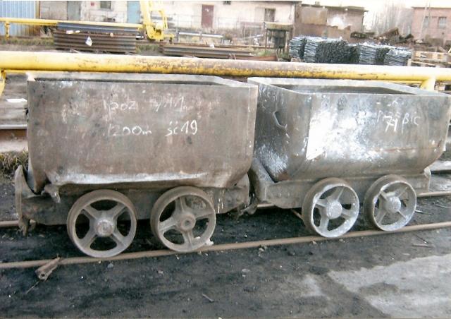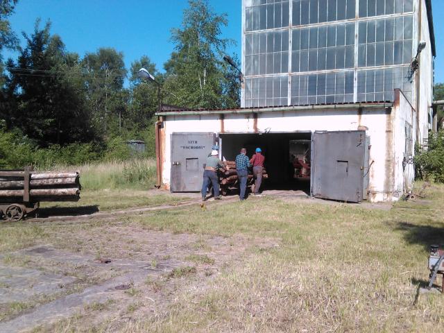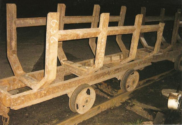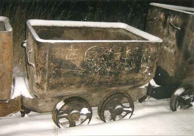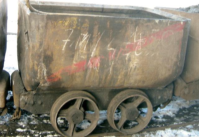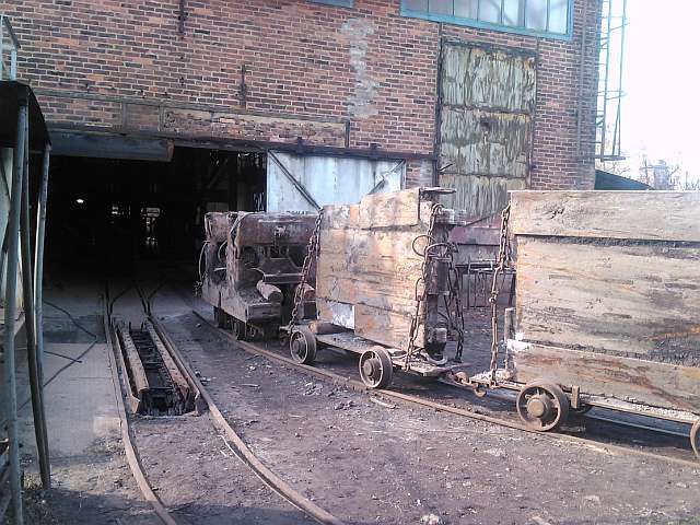 Wpychanie drzewiarki na terenie szybu "Wschodniego".