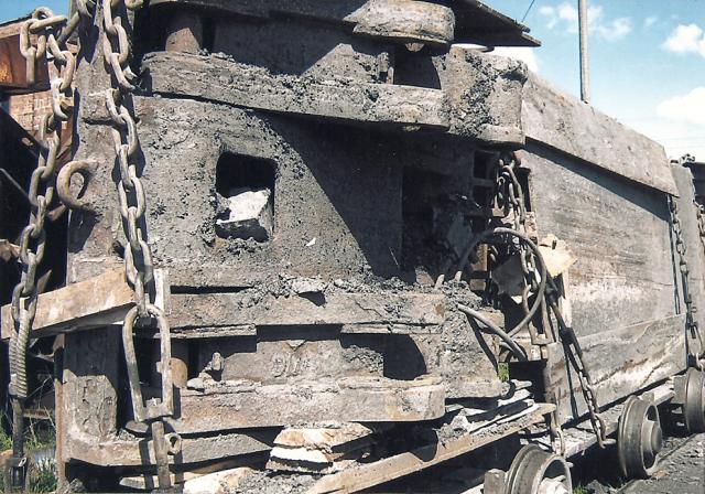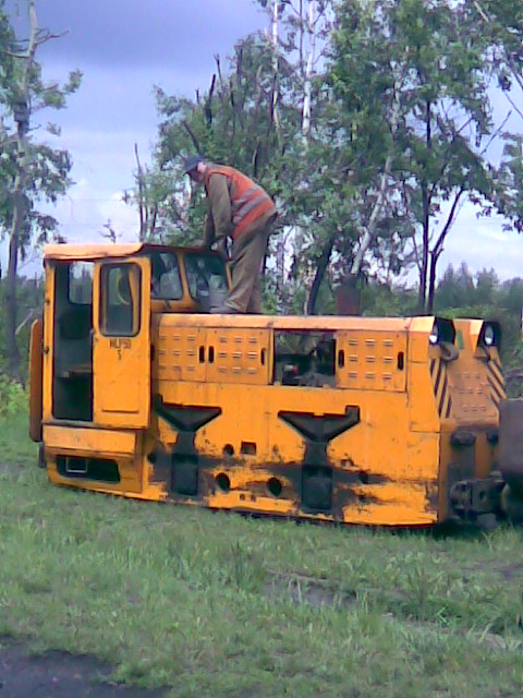 Ta sama lokomotywa manewrująca z wrakiem lokomotywy dołowej typu Ld21.