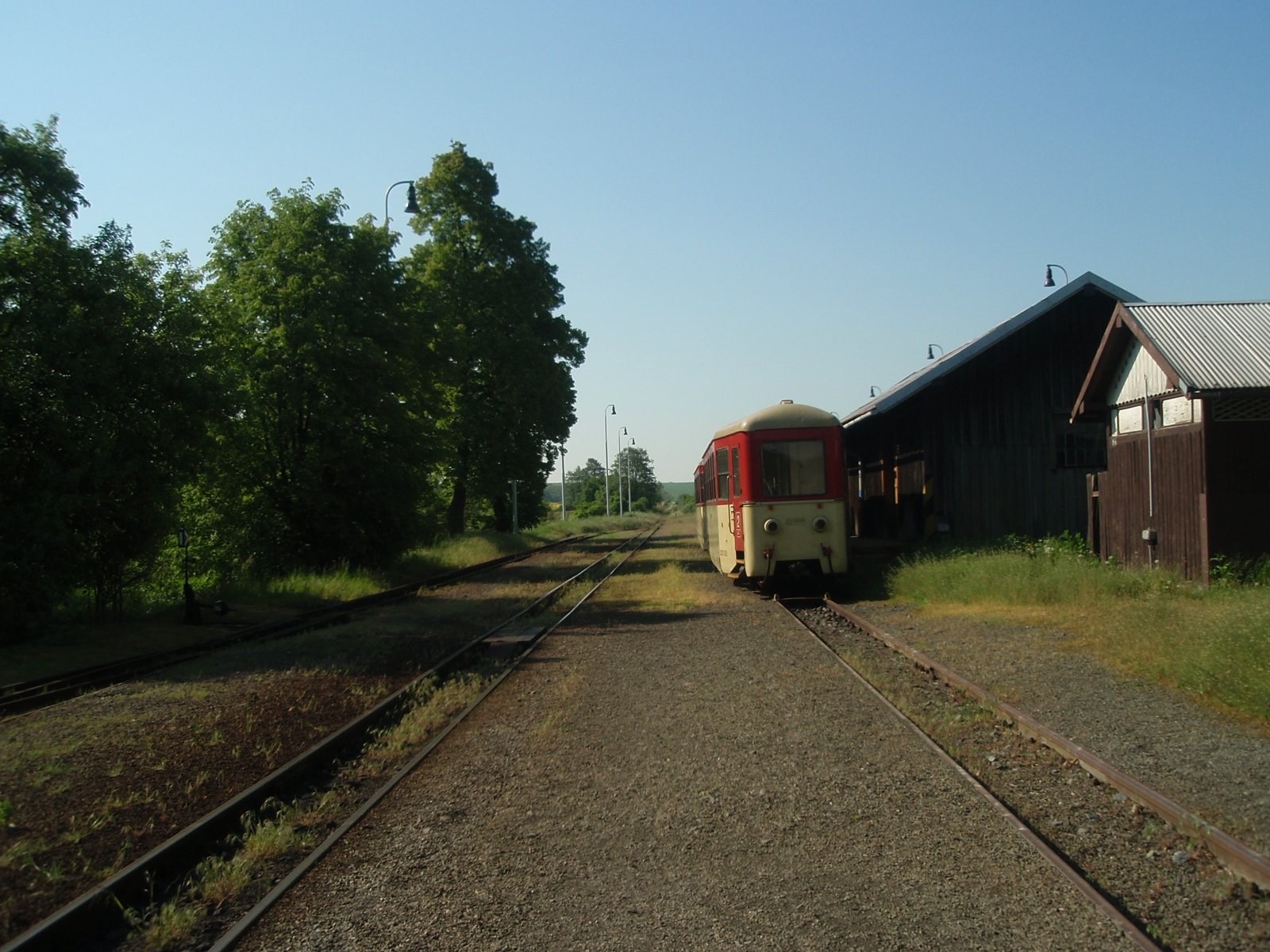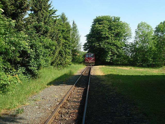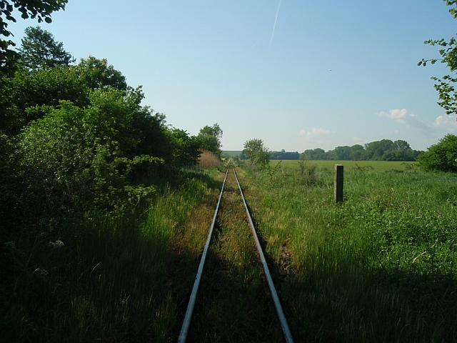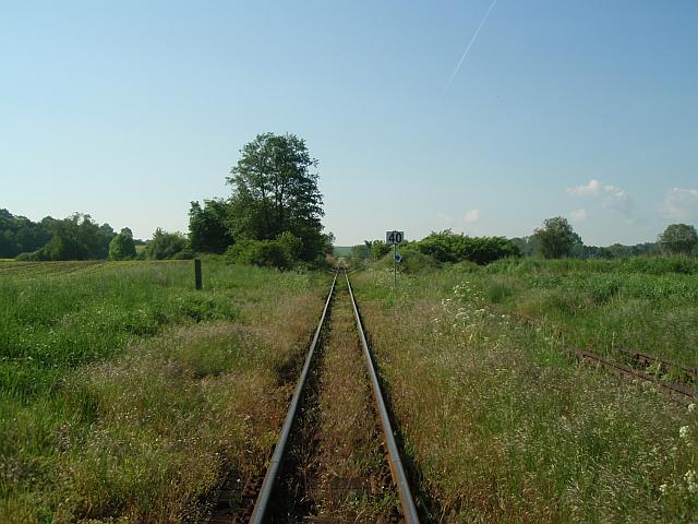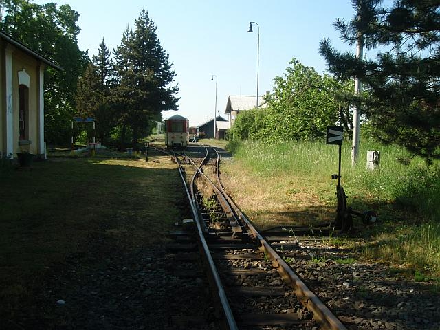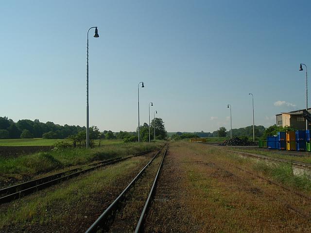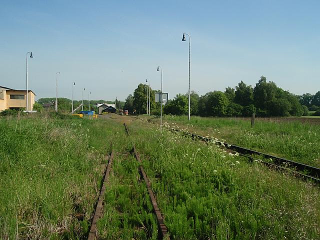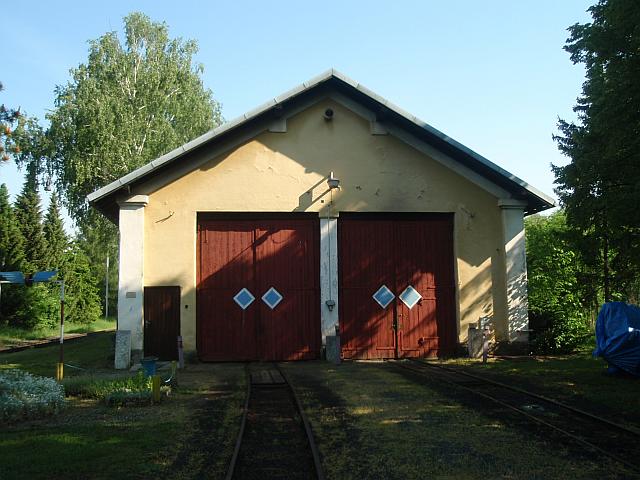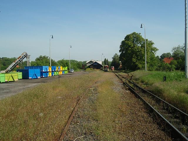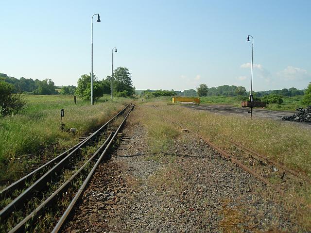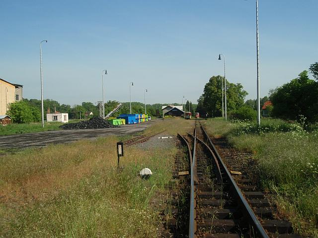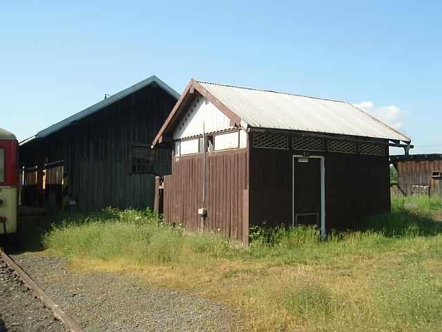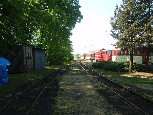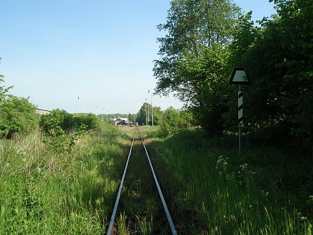 Widok w stronę końca torów, dgdzie stała jedna z lokomotyw. |