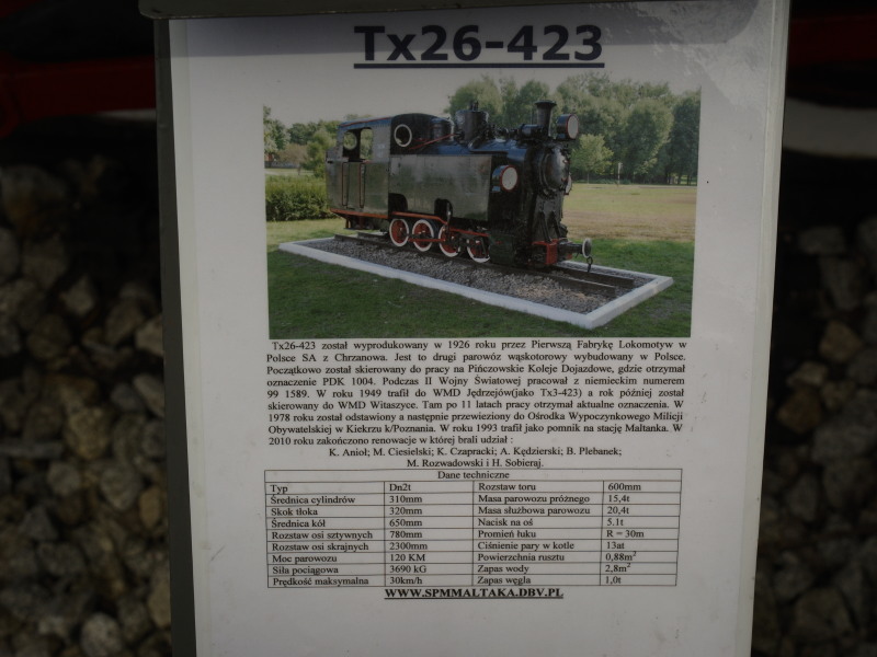 Kartka z danymi o parowozie Tx26-423 stoj±cym w roli pomnika.