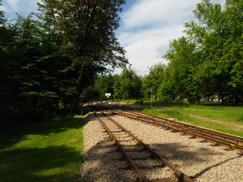Widok w kierunku Planetarium (tor tymczasowo zakończony kozłem oporowym) i lokomotywowni.