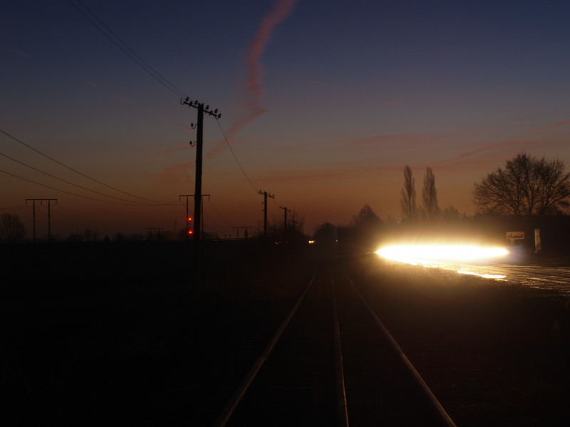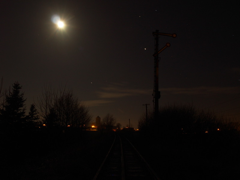Widok na dawny semafor wjazdowy stacji Pleszew W±sk. jeszcze przed wschodem słońca (godz. 6:20)