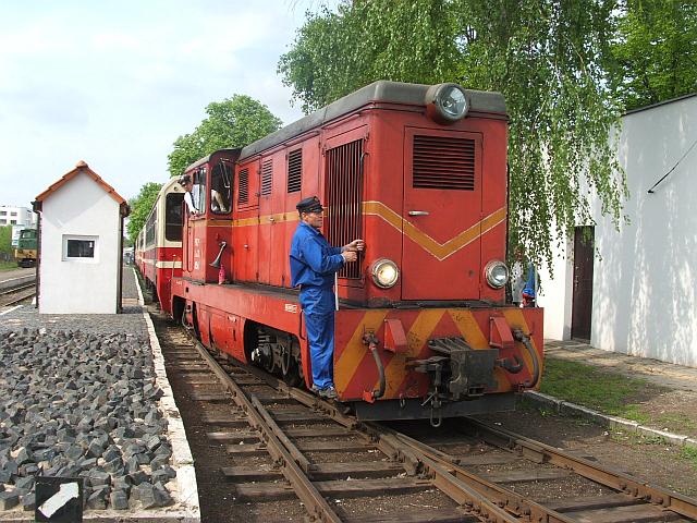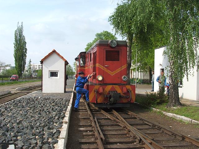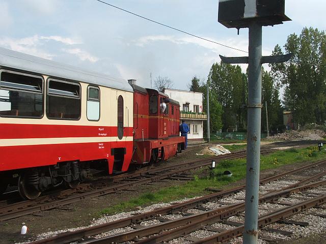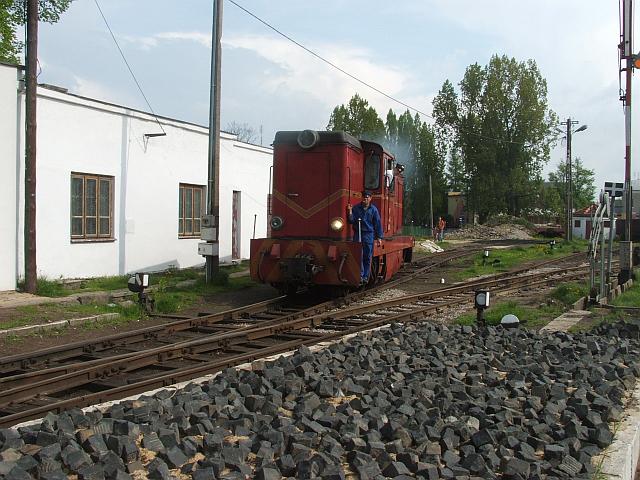 Lokomotywa Lxd2-454, która przyjechała odciągnąć pierwszy wagon ze składu.