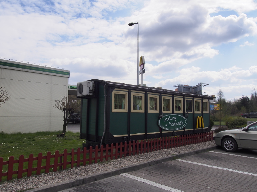 Wagon osobowy przy restauracji Mc Donalds w Rybniku