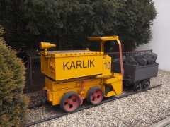 Lokomotywa akumulatorowa Karlik i elektrowóz Ld20 (rozstaw 640mm) - Rydu³towy, przed KWK "Rydu³towy"