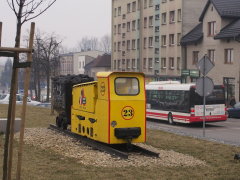 Ld31 z wozem osobowym (rozstaw 750mm) i platforma normalnotorowa - Jaworzno, Planty Jaworznickie przy galerii Galena