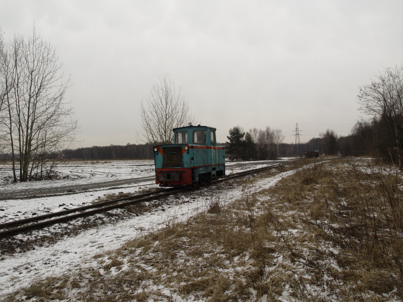 WLs180-1 oczekuj±cy przy zwałowisku, aż WLs180-4 zepchnie na zwałowisko i rozładuje skład 10 wagonów.