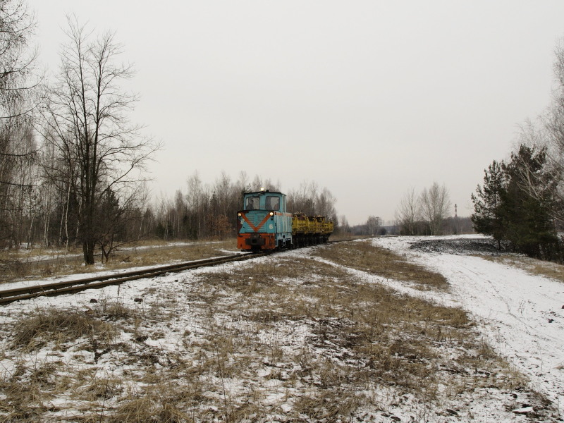 WLs180-6 jadący z pociągiem materiałowym z Kazimierza do Juliusza.