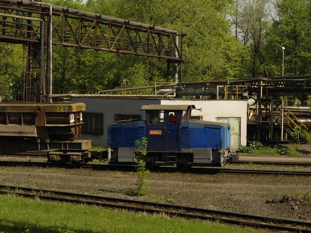 DH200.0512 ze składem 5 wagonów załadowanych złomem przed ramp±, z której kontenery ze złomem zostan± zabrane przez specjalny pojazd drogowy.