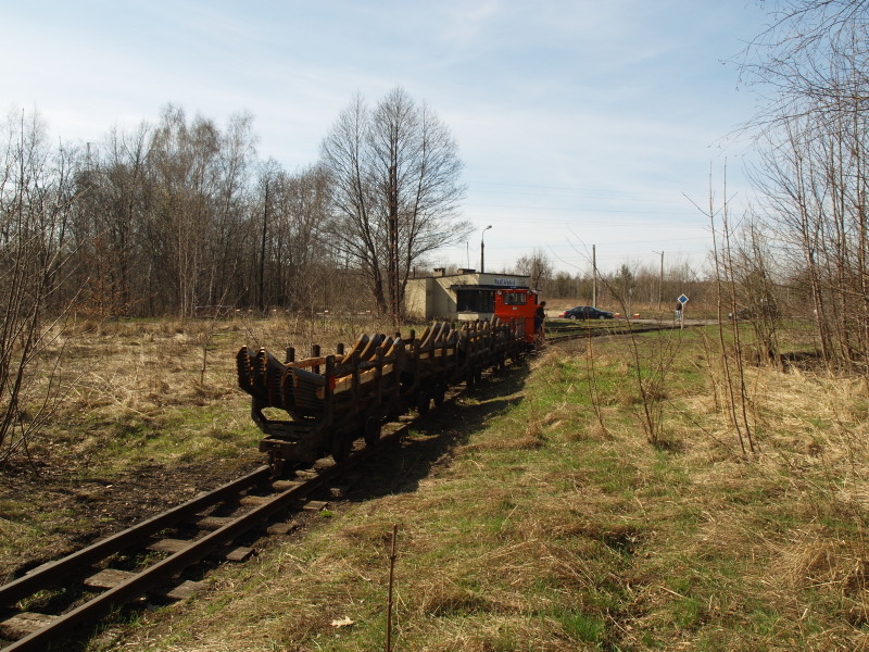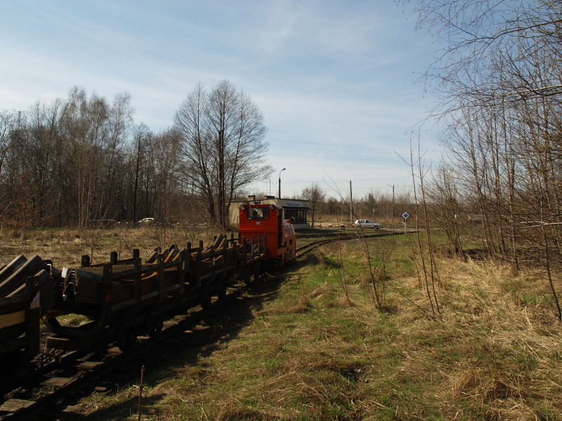 Skład 5 drzewiarek załadowanych elementami obudowy chodnikowej ci±gnięty przez WLp85-3.