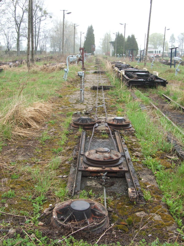 Rampa przestawcza do załadunku wagonów normalnotorowych na waskotorowe transportery na stacji Rogów Towarowy W±sk.