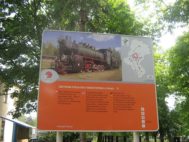 Tablica informacyjna stojąca przy wejściu na teren stacji.