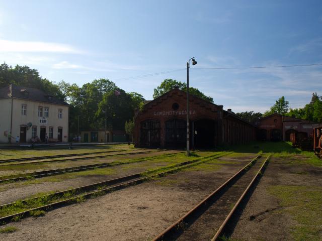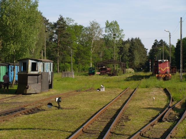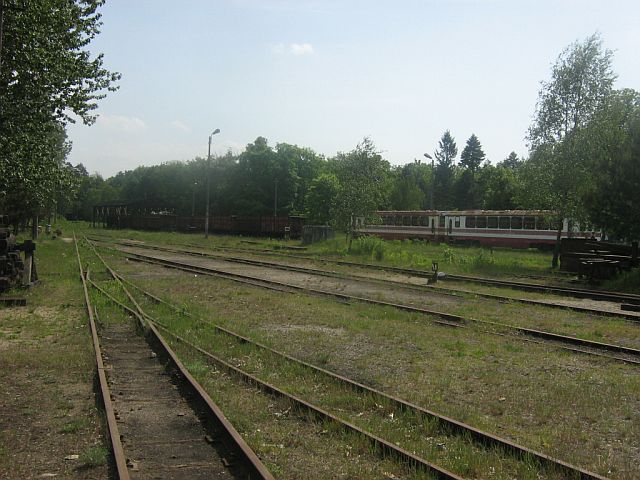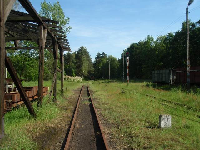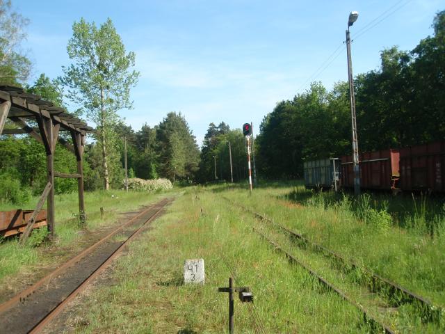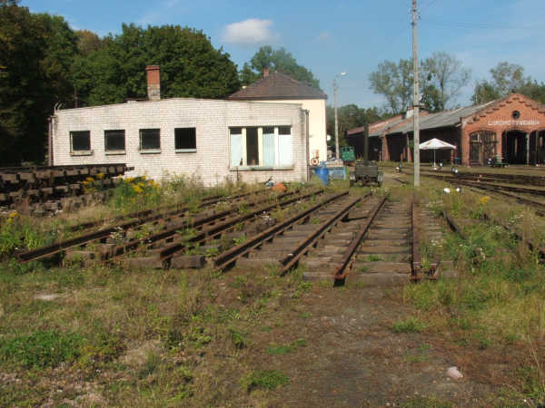 Odcinki torów leżące w pobliżu budynku stacyjnego (który widać).