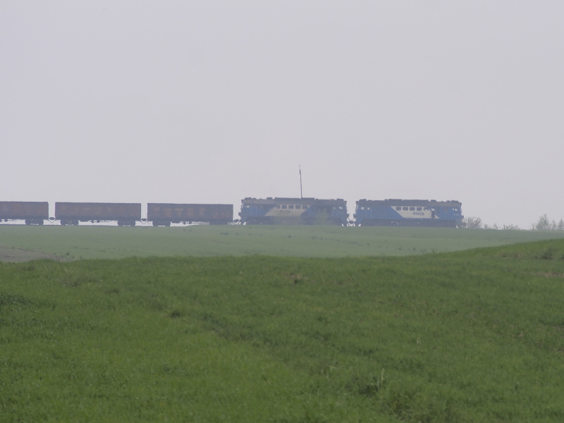 Duet ST44 jadący LHS ze składem węglarek w kierunku Sławkowa. LHS od wąskiego toru jest w tym miejscu oddalony o kilkaset metrów.