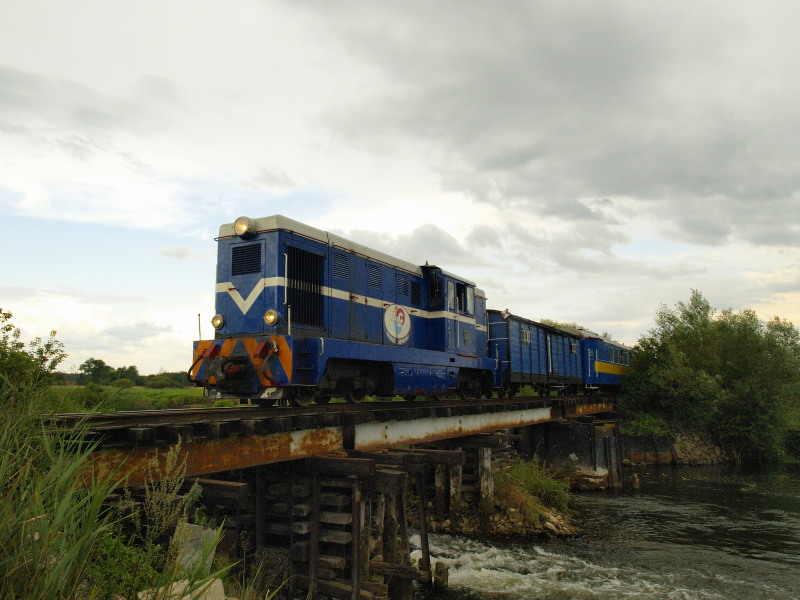 Pociąg turystyczny w drodze powrotnej do Jędrzejowa przekraczający rzekę Nidę między Umianowicami i Motkowicami.