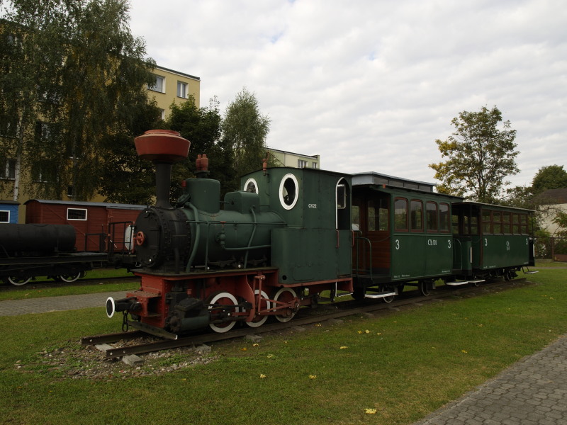Krauss & Co. z cukrowni Kruszwica (CK 22) z dwoma zabytkowymi wagonami osobowymi.