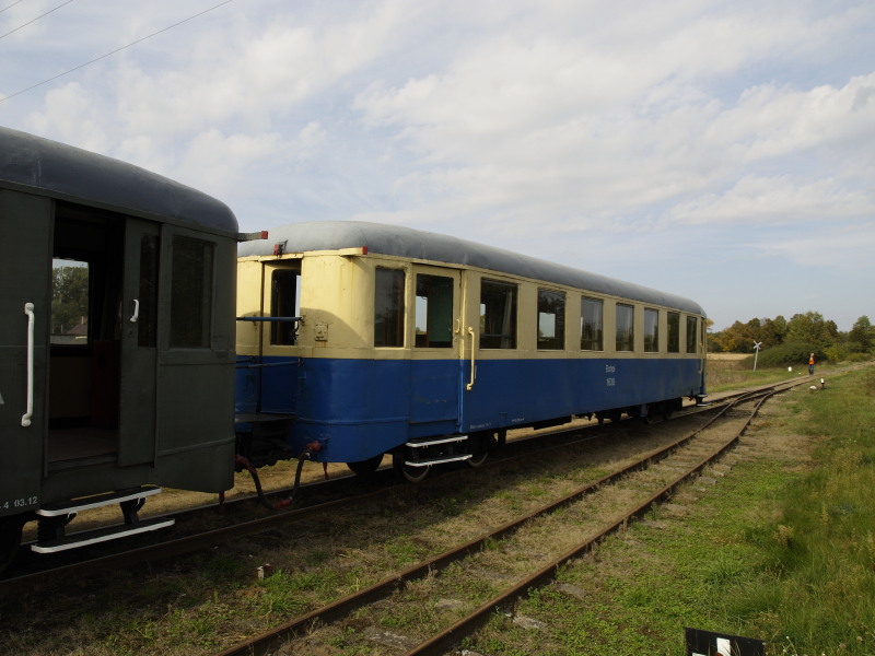 Pociąg turystyczny oczekujący na powrót pasażerów z ogniska.