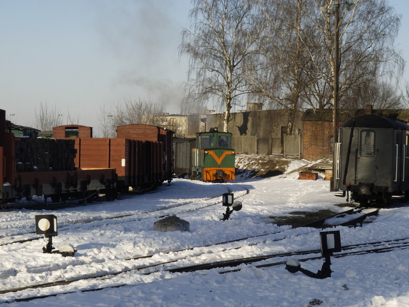 Lyd1-210 wycofujący się z wcześniej zabranymi wagonami za stację, żeby zrobić najazd.