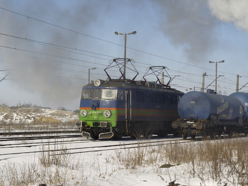EU07E-009 firmy PHU Lokomotiv na normalnotorowej stacji w ¦rodzie.