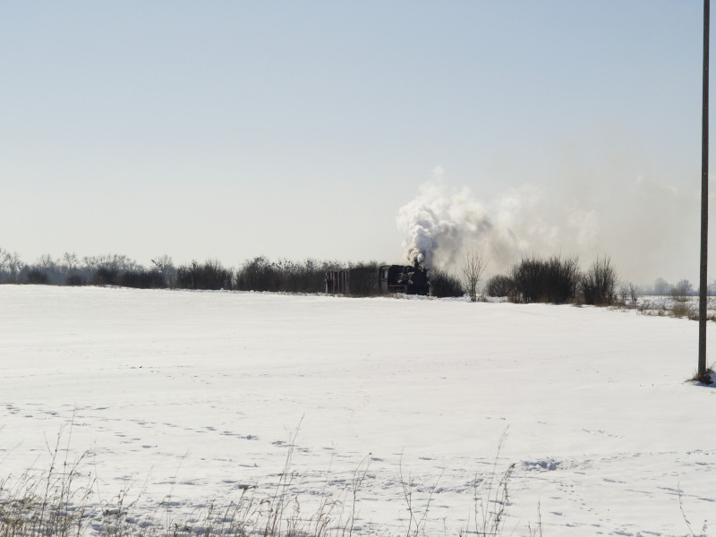 Powrót parowozu z pługiem do składu.