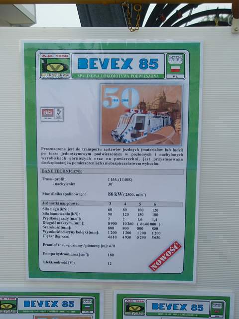 Lokomotywa podwieszana BEVEX 85 firmy BEVEX. |