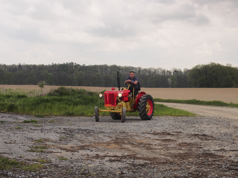 Okoliczni mieszkańcy na zabytkowych traktorach.