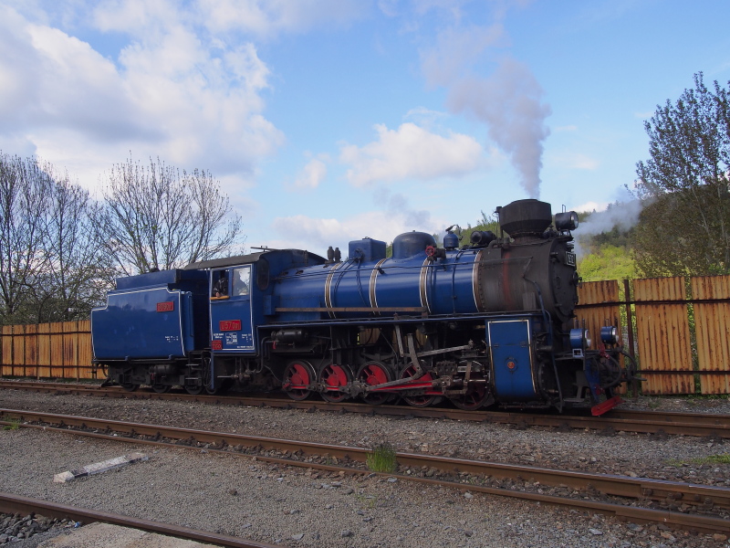 Parowóz po odstawieniu wagonów należących do towarzystwa Slezské Zemské Dráhy zjeżdżający po wagon ČD.